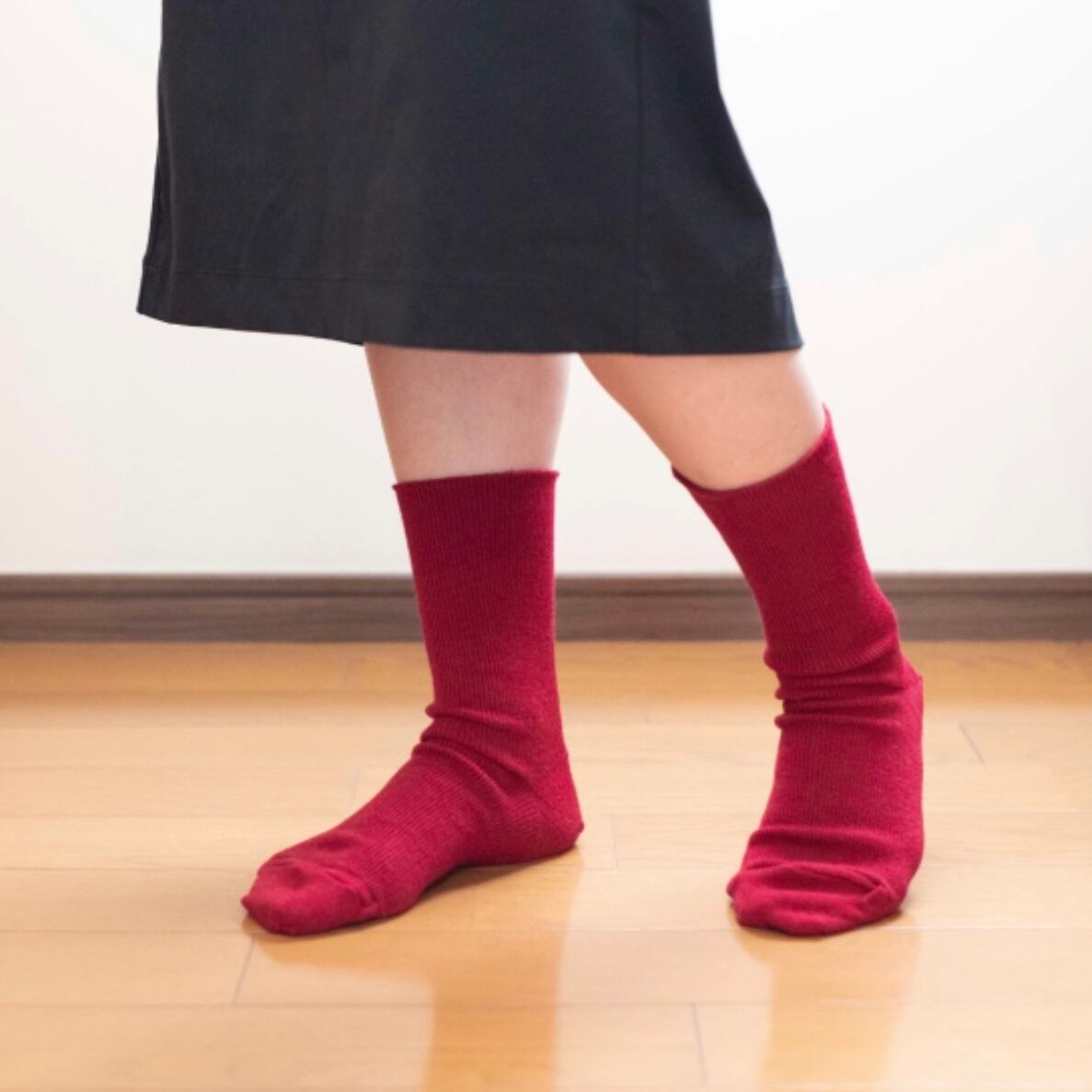 1枚でも十分に温かいですが、「もっと足元を温めたい!」「徹底的に冷えを解消したい!」という場合には、しめつけ感なく重ね履きもできます。